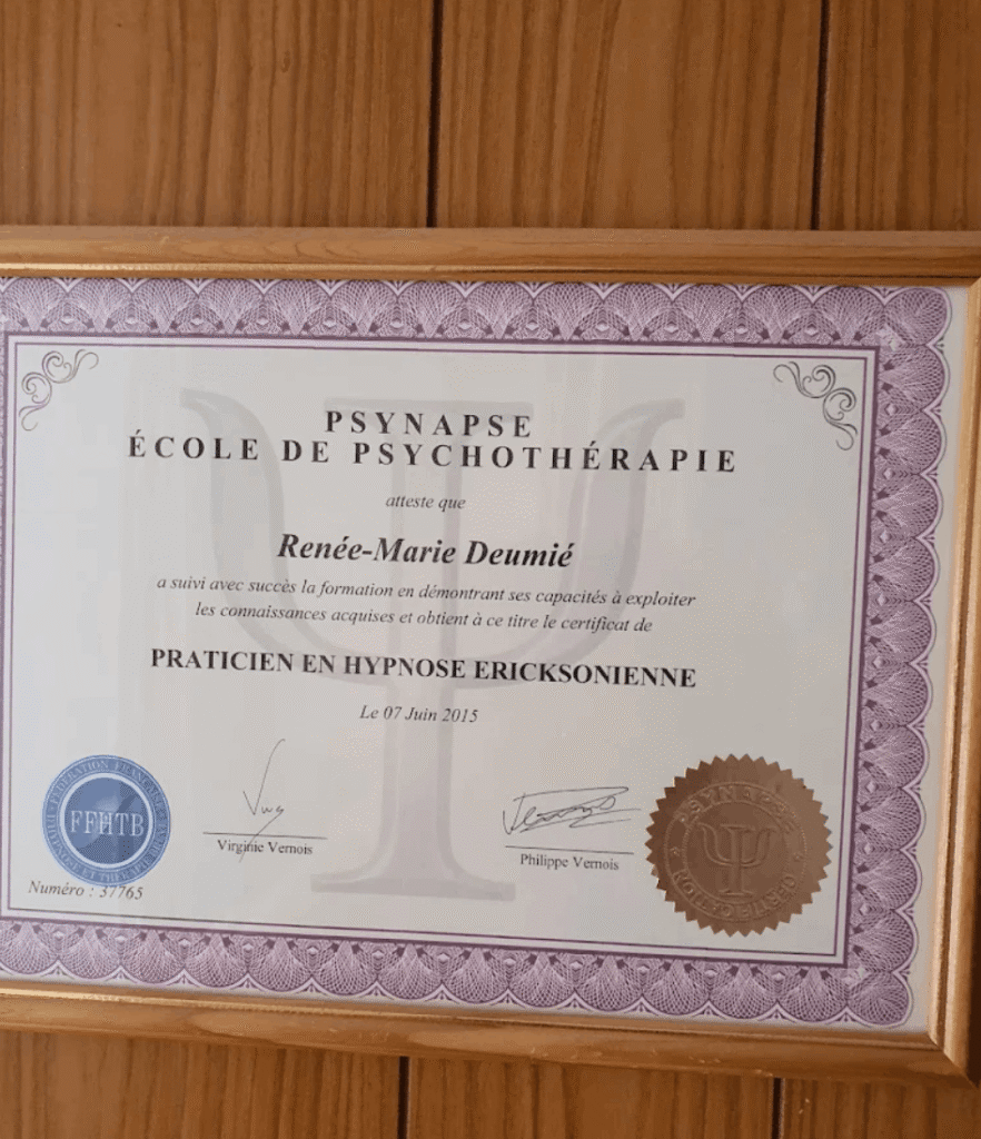 Je suis certifiée par l’école Psynapse, à laquelle j’adhère pleinement dans sa charte éthique, et je suis recommandée par le Dr Paret pour la qualité de mon approche.
